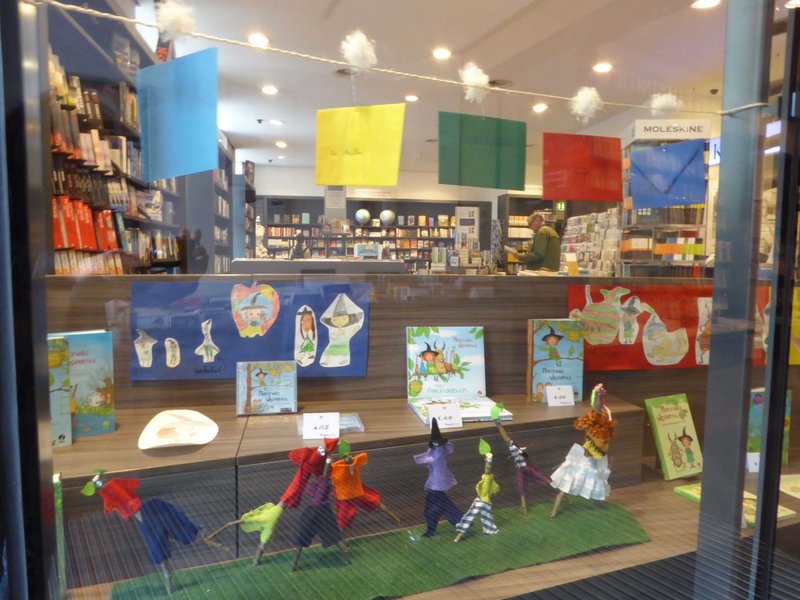 Die Kinder haben teils gemeinsam teils alleine das Buch gelesen. Anschließend wurde das Buch besprochen. In Gruppen konnten die Kinder: - Apfelmännchen aus Ästen und Stoffen basteln, - Zaubersprüche für ein Zauberbuch schreiben, - Briefe mit Pusteblumen-Samen basteln, - eine große Petronella mit Lucius mit Wasserfarben ausmalen, - Zeichnungen zum Buch anfertigen und anmalen, - ein Petronella - Apfelhaus aus Papiermache` basteln und anmalen. Nach dem zweiwöchigen "Petronella Apfelmus"-Projekt spazierten wir zur Wagner´schen Buchhandlung. Dort gestaltete die Dekorateurin des Geschäftes mit uns gemeinsam das Schaufenster. Als Überraschung bekamen wir noch eine Petronella-Apfel-Jause!- Projektleitung: