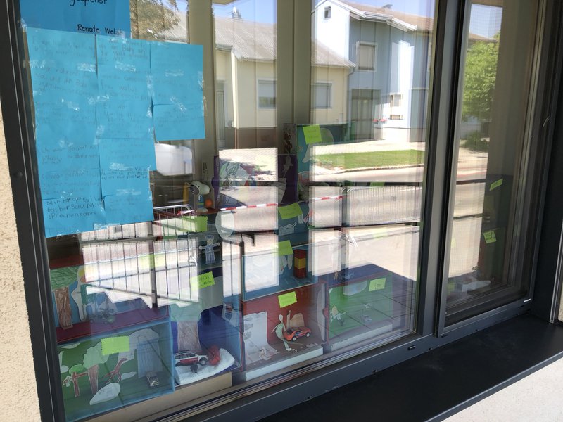 Mit Begeisterung lasen die Kinder dieses Buch, and gestalteten dazu Schuhschachteln für das Leseschaufenster. Sie überlegten gemeinsam, was sie besonders lustig, traurig, ... fanden, und schrieben dazu Sätze. Im Rahmen der feierlichen Eröffnung wurden diese dann vorgetragen. Auch ein Lied zum Lesen wurde schulintern verfasst, und bei der Eröffnung gesungen.