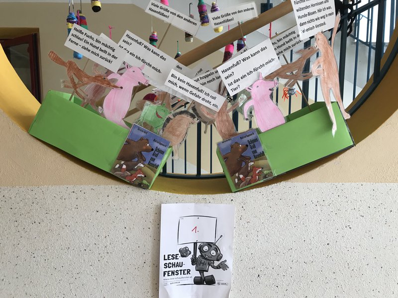 Die erste Klasse las das Buch "Schönen Gruß vom Hasenfuß" und bastelten lustige Stabpuppen.- Projektleitung: