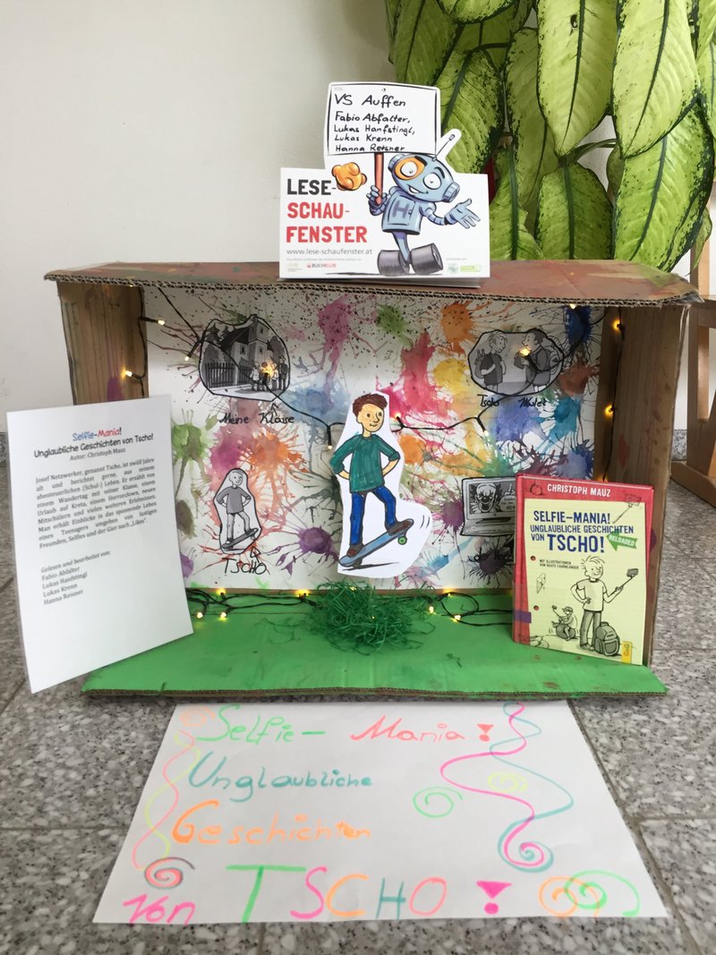 Die vier Mitglieder dieser Gruppe lasen abwechselnd einzelne Kapitel des Buches "Selfie-Mania!", notierten sich dazu das Wichtigste und erzählten es sich anschließend. Einige wienerische Ausdrücke waren den Kindern unklar. Auch würden sie dieses Buch eher älteren Kindern empfehlen, da der zwölfjährige Protagonist aus seinem Leben erzählt, und dies Jugendlichen wahrscheinlich eher zusagt. Diese Gruppe entschied sich bei der Gestaltung dazu, Szenen des Buchs farbenfroh und mit Lichteffekten zu präsentieren.- Projektleitung: