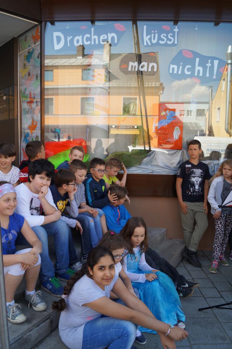 Passend am Welttag des Buches (23.4.18) wurde von der 4a Klasse der VS Zeltweg das Leseschaufenster bei der Raiffeisenbank Aichfeld enthüllt. Mit einer kurzen Geschichte und einen Lied umrahmten die Kinder die Präsentation.- Projektleitung: