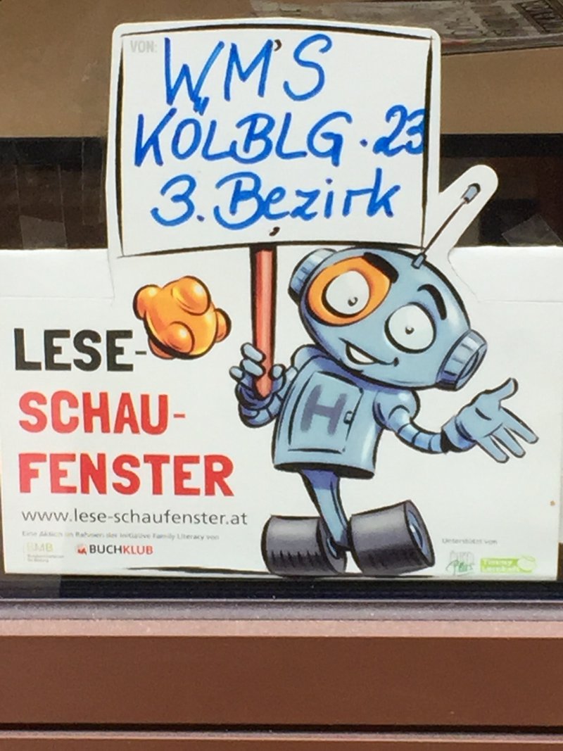 Den Schülern hat das Buch sehr gut gefallen und die Ausarbeitung der Plakate im Unterrichtsgegenstand "Kreatives Gestalten" zugesagt. Wir haben unsere Plakate mit einer kurzen Beschreibung des Buches vor ca. 1 Woche im Mokador ausgehängt. Für die Schüler war dies eine andere Form des Lesens. Auch für die Gäste im Mokador stellt diese Art der Präsentation eine völlig neue Erfahrung in ihrem Alltag dar. Sollte es nächstes Jahr wieder ein derartiges Projekt geben, würden wir gerne daran teilnehmen.- Projektleitung: